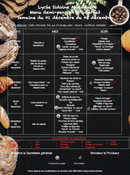 Chaque jour l'équipe de cuisine propose et compose des menus à 5 composants :