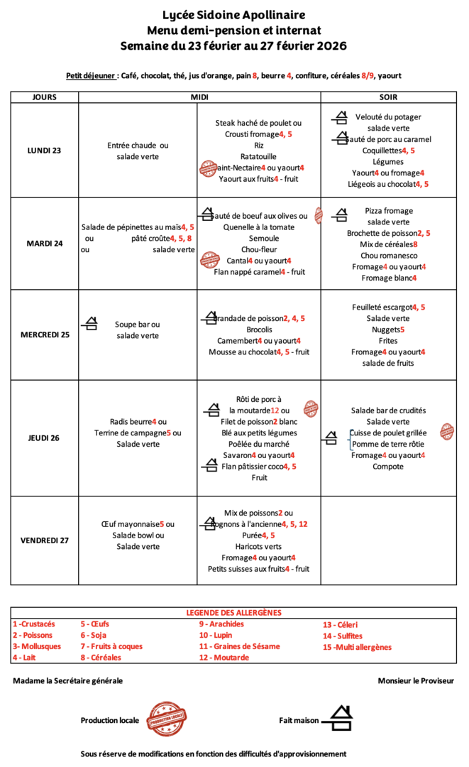 Vous pouvez régler vos repas en ligne. En savoir plus ici