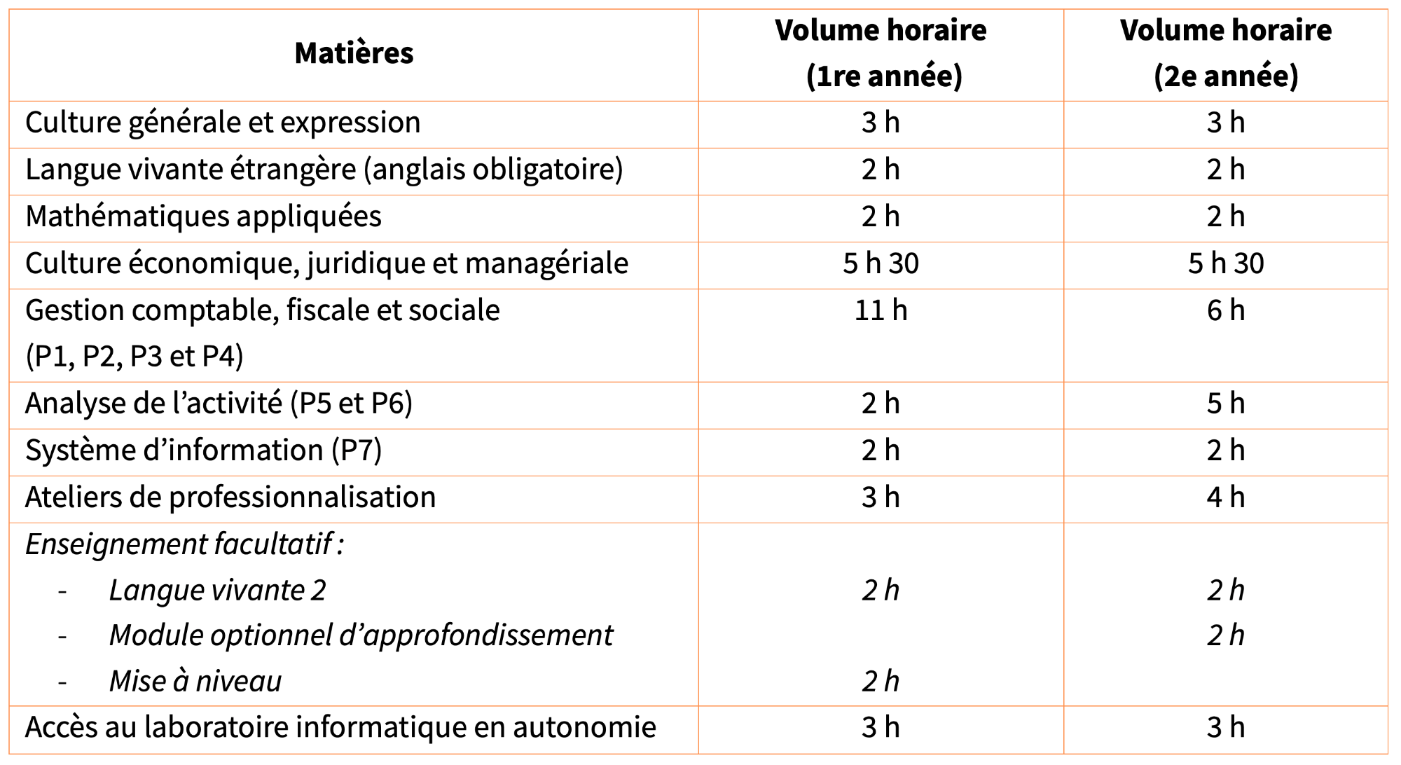 - Formation théorique : 31 heures de cours par semaine en moyenne