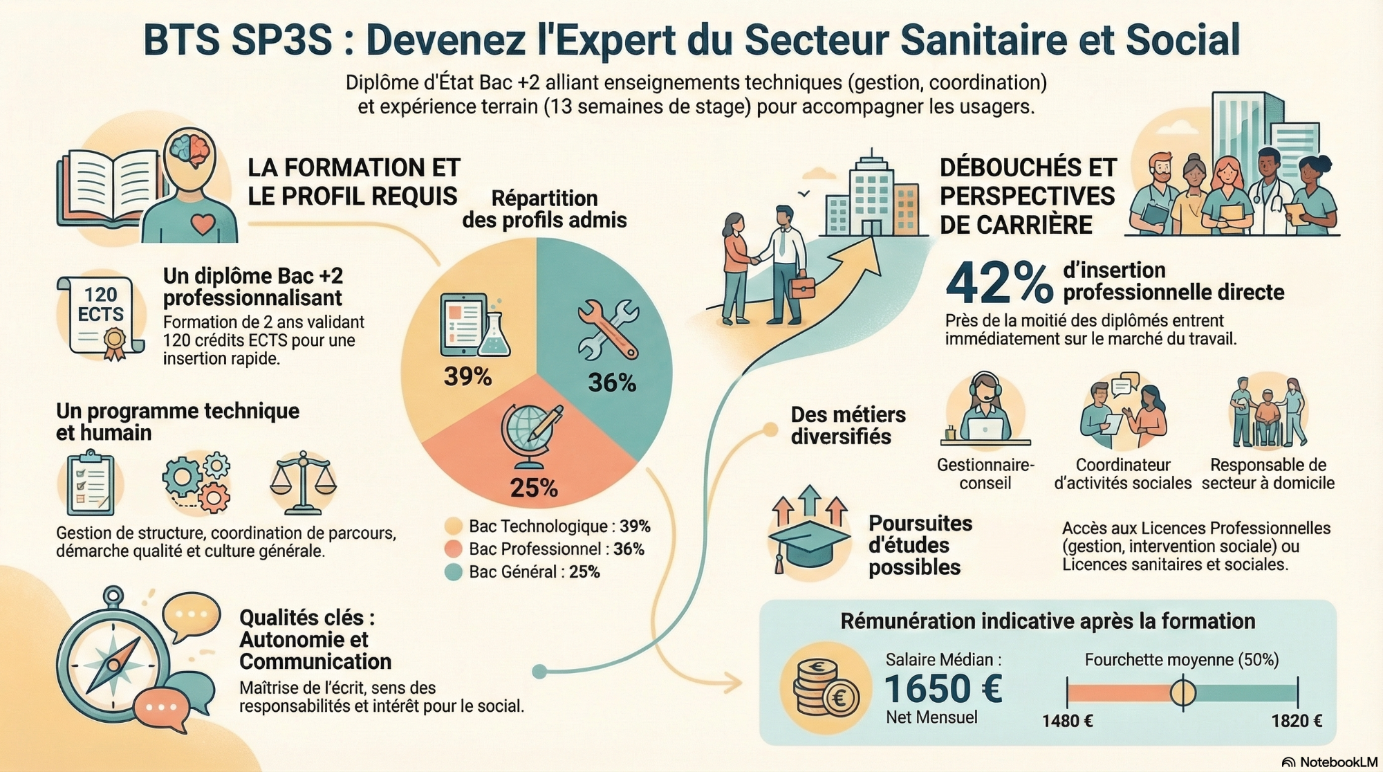 Le BTS SP3S prépare à devenir un professionnel capable d’accompagner, d’informer et d’orienter les publics dans leurs démarches de santé et sociales, en alliant organisation et sens du relationnel.