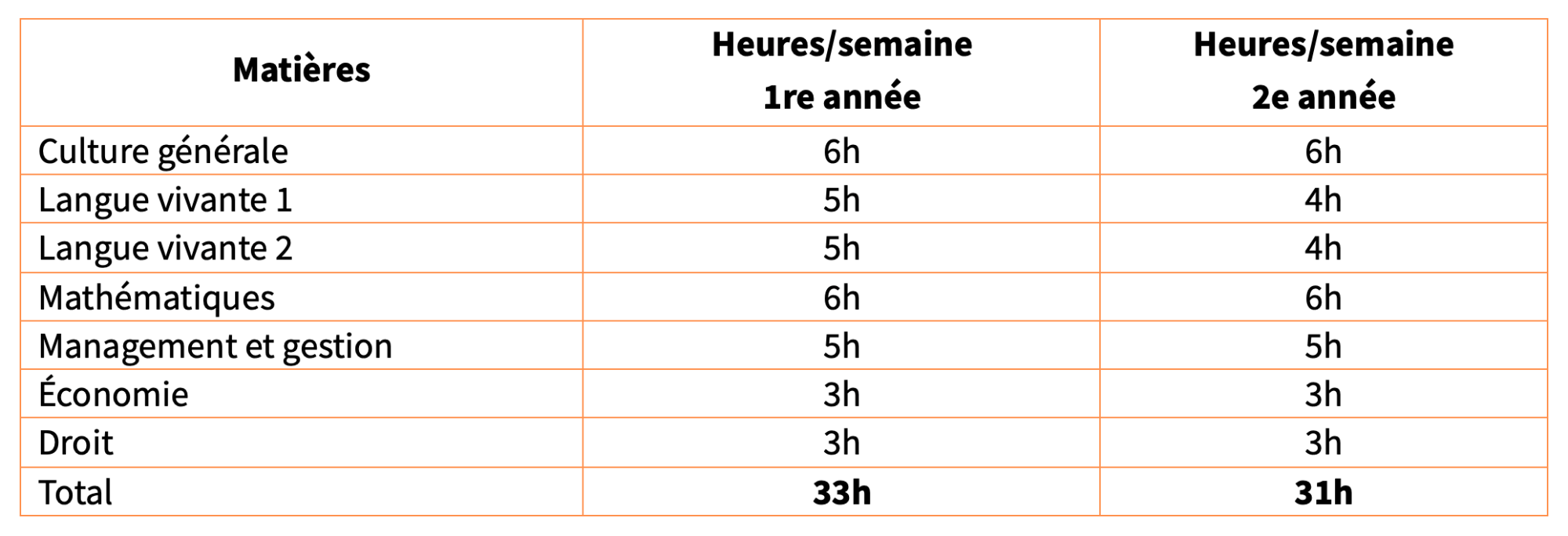 - Culture générale, économie, mathématiques, langues vivantes, management et gestion, droit.